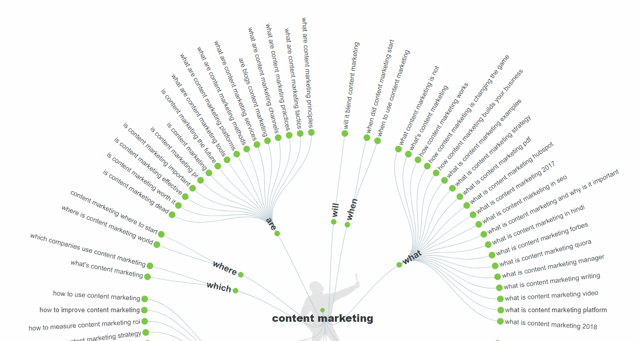 An alternative is to use a tool like AnswerThePublic. Enter a service-focused keyword (such as “content marketing”) and it will show a list of questions people ask related to it.